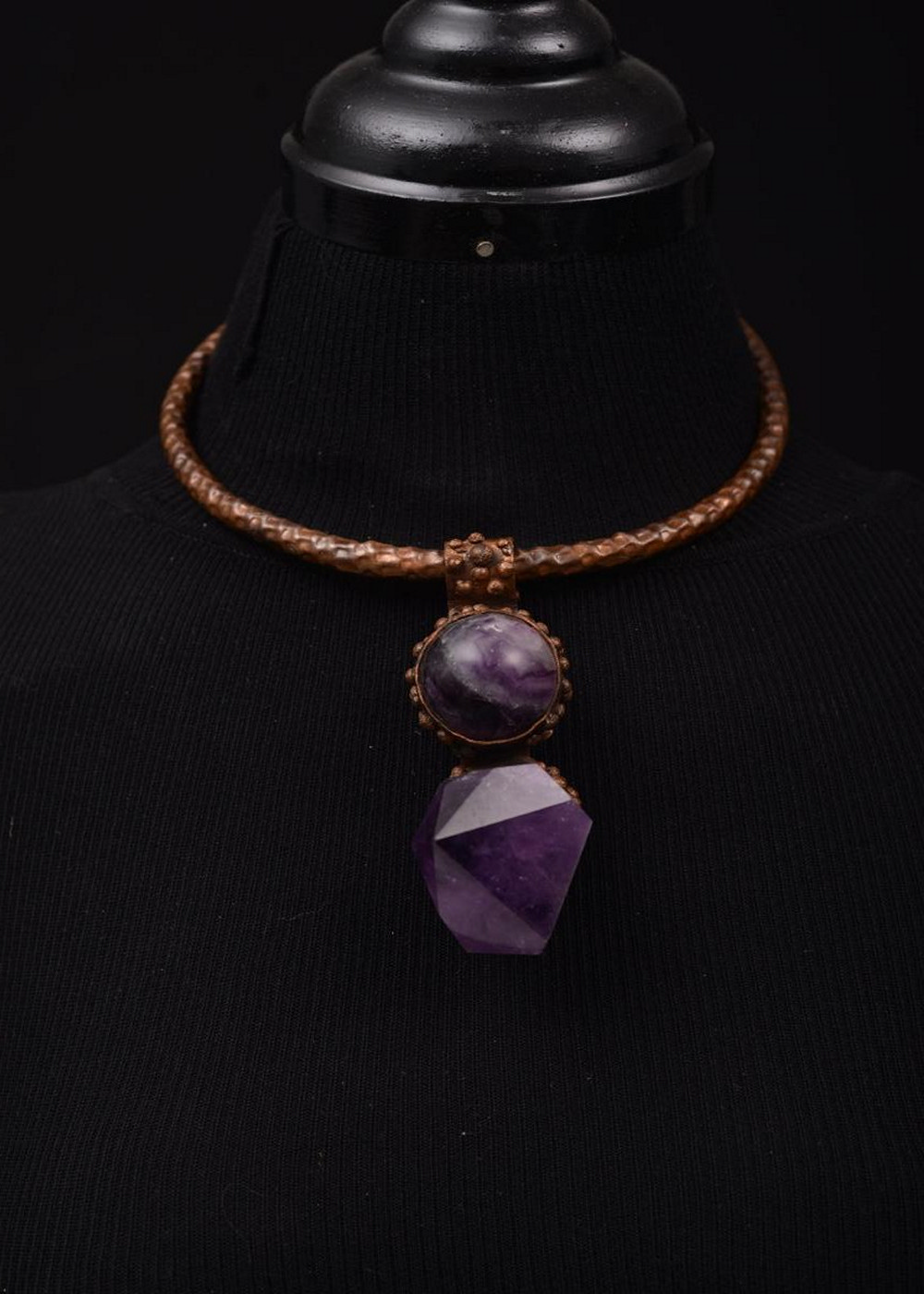 THE AMETHYST ROCKA bold Copper necklace with amethyst & fluorite