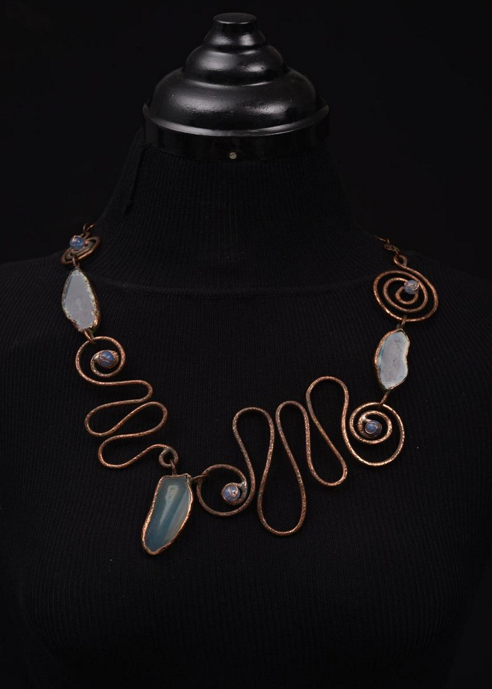 This unique necklace blends ethnic and modern styles with blue agate slices for enhanced clarity and kyanite beads to attract luck. Finished with our signature logo, it's a meaningful accessory for everyday wear.