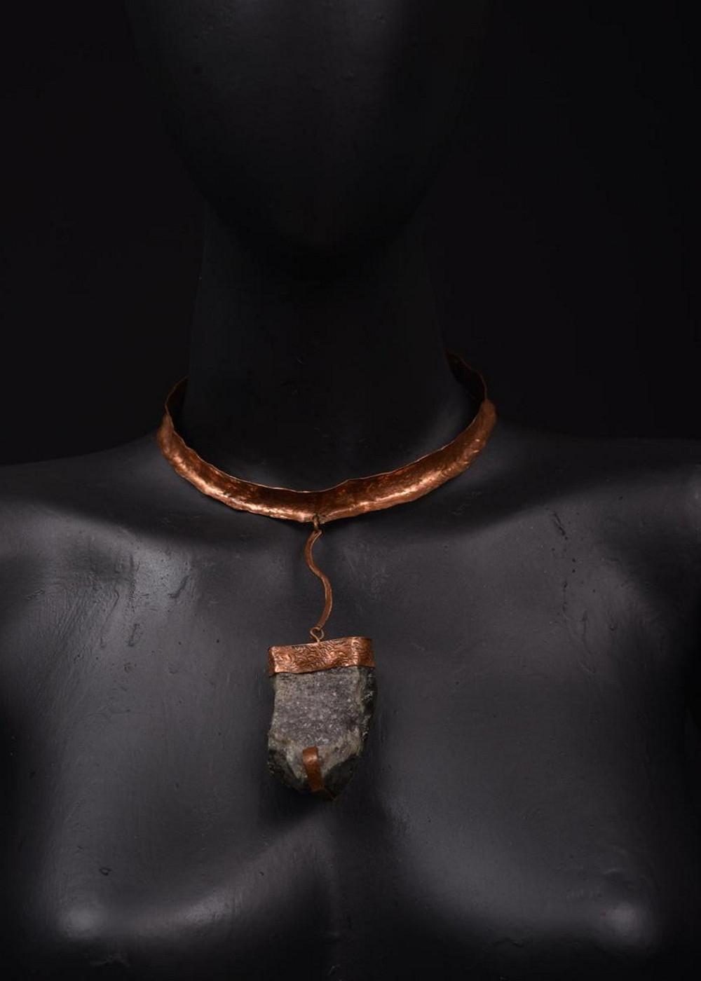 The raw amethyst stone, with its organic shape, serves as a focal point, creating an earthy yet elegant look. Each necklace is one-of-a-kind, reflecting the individuality of the wearer and the natural beauty of the gemstone, its unique shape makes it a standout accessory.